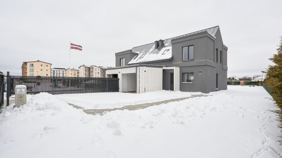 Semi-detached house in a good location in Mārupe. On the first floor there is a living room with access to the terrace, which is combined with the...