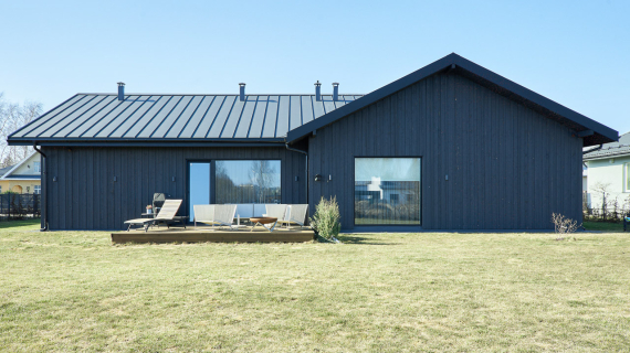 One-story house designed by a designer in Mārupe. The living room is combined with the kitchen area, which is equipped with all the necessary...