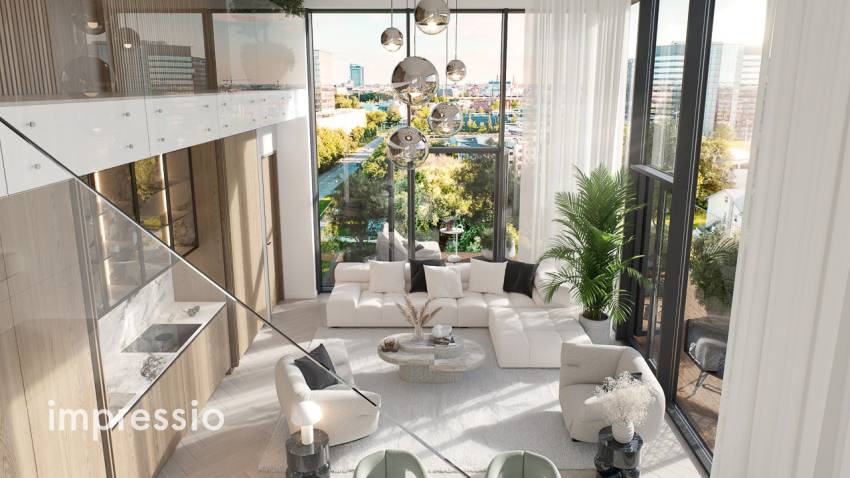 Viesistaba apvienota ar virtuves zonu un izeju uz plašu (27m2) terasi, kura vērsta uz dienvidaustrumu pusi. Divas izolētas guļamistabas. Viena vannas istaba un viena saimniecības telpa. Plaši logi ar panorāmas skatu. Grīdas apkure visās istabās. Individuālie siltuma skaitītāji un īpaša dzesēšanas un apsildes sistēma ar enerģijas pāļiem palīdz samazināt apkures...