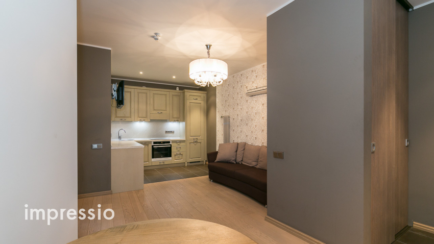 Гостиная, совмещенная с кухней, спальня со встроенным шкафом, ванная комната, прихожая со встроенным шкафом. Квартира полностью меблирована и оборудована всей необходимой бытовой техникой, включая посудомоечную машину. Индивидуальные счетчики тепла. В квартире есть телевизор и оптический интернет, домофон. Ремонт квартиры выполнен с использованием высококачественных материалов – деревянные полы, двери из массива дерева, алюминиевые окна, дизайнерские радиаторы и т.д. Хорошая звукоизоляция. Запирающаяся лестница, видеонаблюдение. Хорошая инфраструктура – все необходимые объекты инфраструктуры находятся в непосредственной близости.