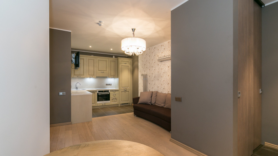 Качественная двухкомнатная квартира в Старом городе. Гостиная, совмещенная с кухней, спальня со встроенным шкафом, ванная...