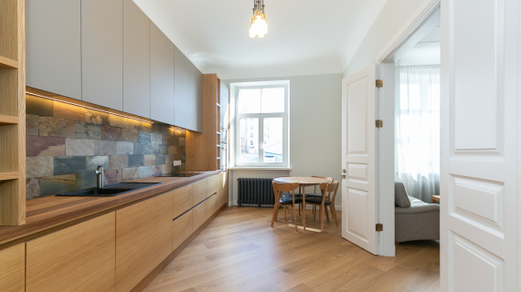 Двухкомнатная квартира в отреставрированном здании. Отдельная полностью оборудованная кухня со всей необходимой техникой...